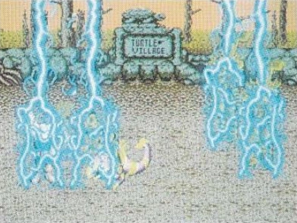 The player can find Gillian's cave by chopping the trees in Lake Whale with the Battle Axe. Gillian asks for a Golden Apple to heal his wounds, and if the player helps him, he will give the Thunder Magic Scroll as thanks. After the player obtains four of the nine crystals, Gillian will upgrade the Thunder Magic if revisited, and has faith that the warrior can defeat Death Adder.