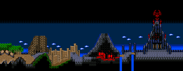 A few years after Death Adder's defeat, Dark Guld appears to conquer the land in Golden Axe II. The three warriors go into battle again to deal with this new menace, starting by taking care of his forces in a Ravaged Village. The trio then pass by Ancient Ruins, the Enemy's Headquarters, the Dragon's Throat cave, the Castle Gate, and inside Dark Guld's Castle.